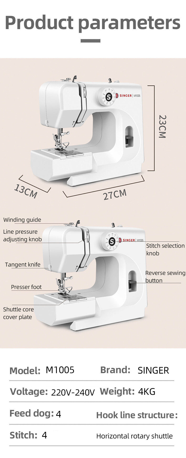 Singer Sewing Machine M1005 PROMISE Portable Household Electric Lockrand with pedal