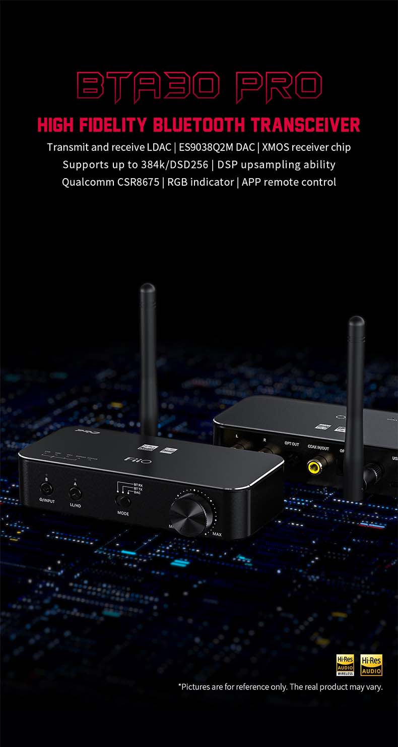 >Presenting you the all-new high-resolution Bluetooth transmitter+receiver from the house of FiiO, the BTA30 Pro. BTA30 Pro comes as a direct successor to the highly-acclaimed BTA30 BT transmitter with a premium ESS Sabre DAC chip, high-performance DSP chip, and many new features. Create a comprehensive Bluetooth desktop system at your home with the advanced BTA30 Pro today!!