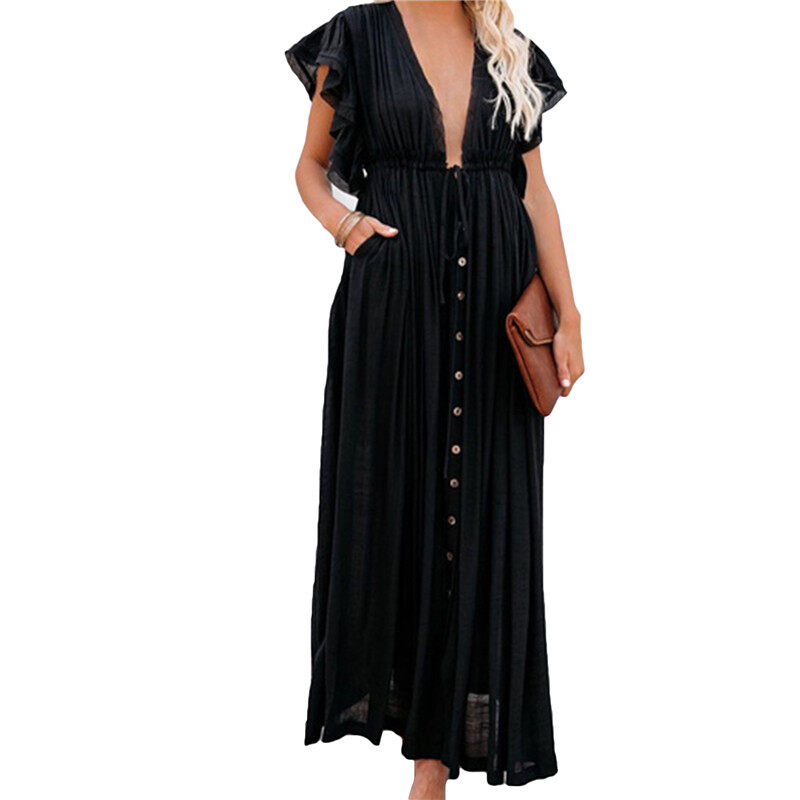 Pick me up ShopWoman Bohemian Boho Fashion Elegant V Neck Bikini Cover-ups Long White Tunic Casual Summer BeachDress Elegant Women BeachWear Swim Suit Cover Up Loose Maxi Pregnant Maternity Dresses Pl
