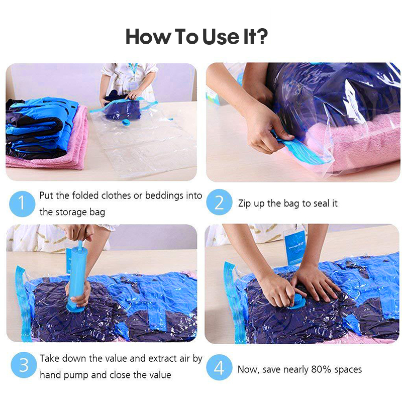 Vacuum Bag 5Pcs/set Transparent Clothes Quilt Seal Compression Storage Bag Resealable Luggage Vacuum Storage Bags Travel Household Storage Sack