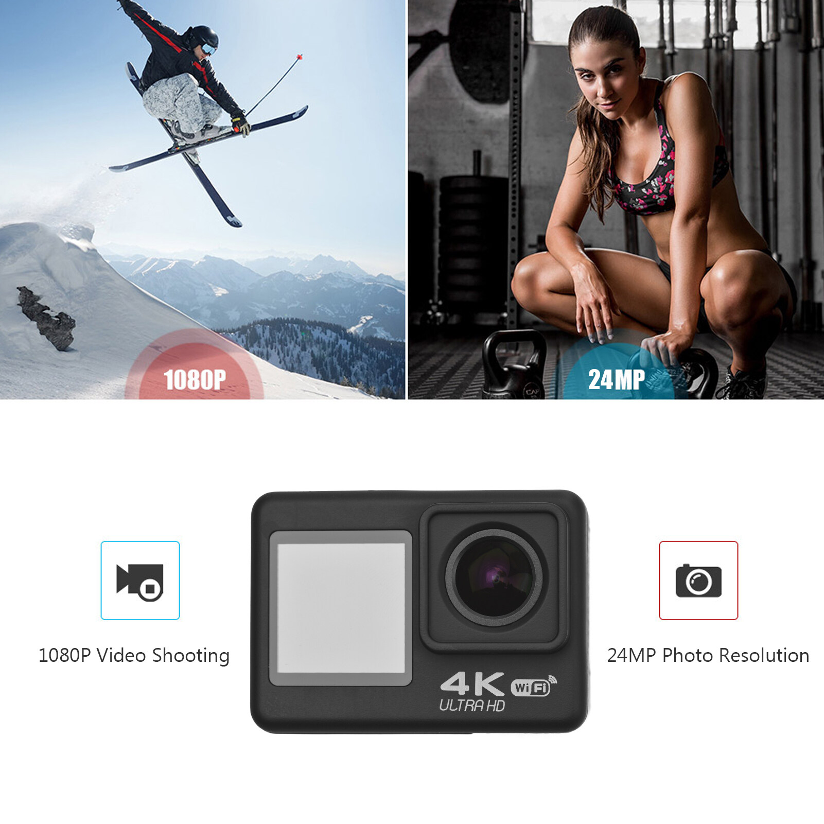 30M Waterproof: Comes with waterproof housing and waterproof depth is up to 30 meters, which allows you to use the action camera to take wonderful pictures underwater, ideal for diving, surfing, skiing and other outdoor sports.
