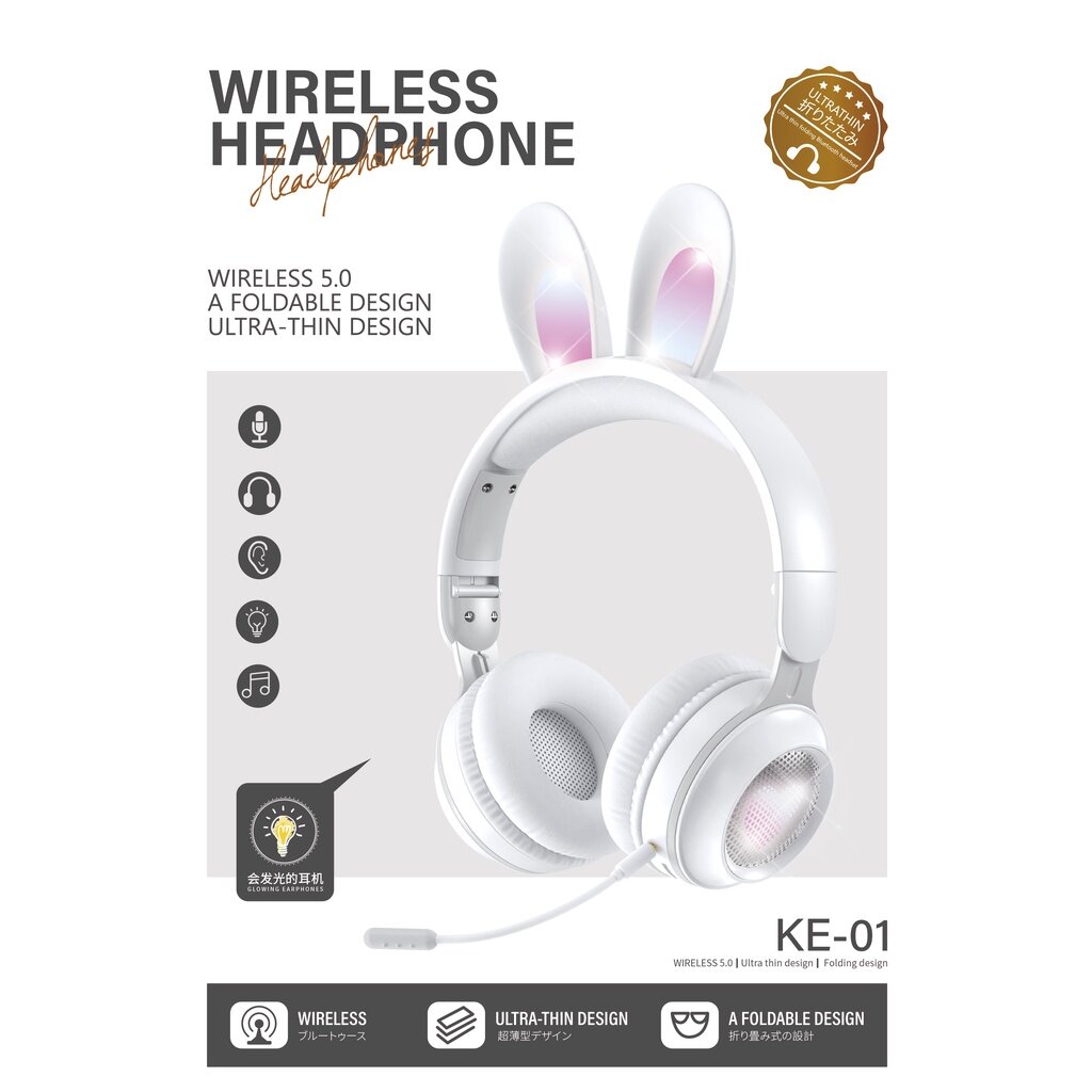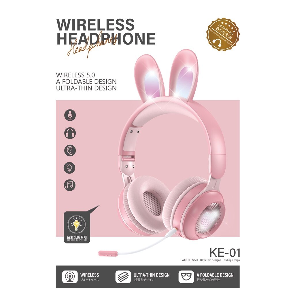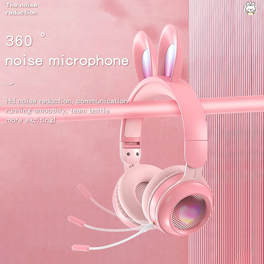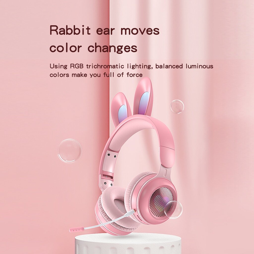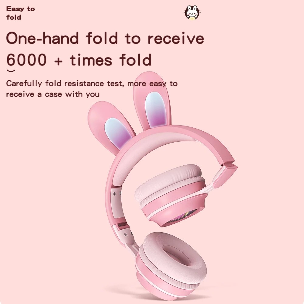 Glowing Wireless Headphones Flash Light Rabbit Ear HIFI Stereo With Mic Noise Reduction Headset For Kids Bluetooth Compatible