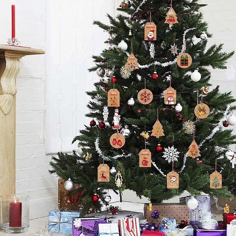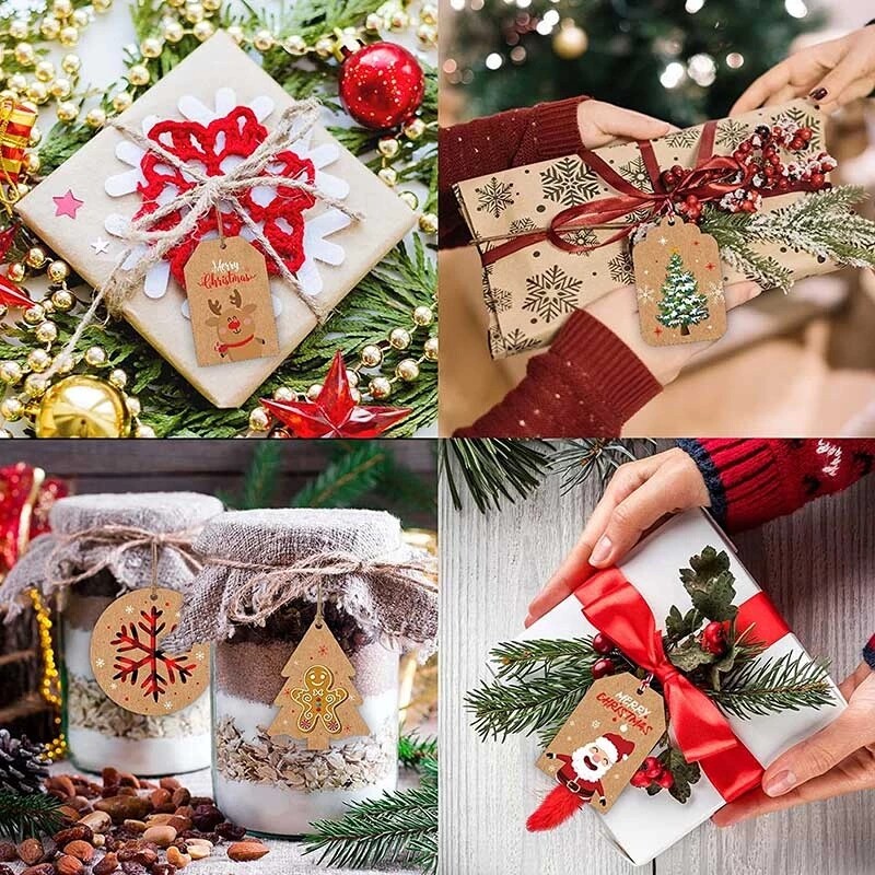 50Pcs Merry Christmas Kraft Paper Tags DIY Handmade Gift Wrapping Paper Labels Santa Claus Hang Tag Ornaments New Year Decor