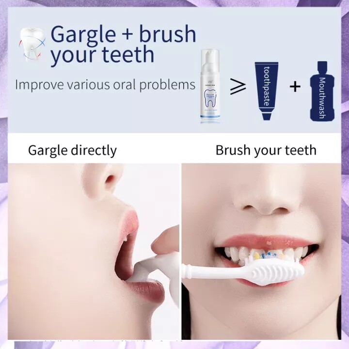 • 01.Squeeze proper amount of foam into your mouth, balloon your cheeks to make the foam flow over your oral cavity and gingiva; spit the foam out in 10 – 15 seconds and you will feel that your mouth is refreshed instantly