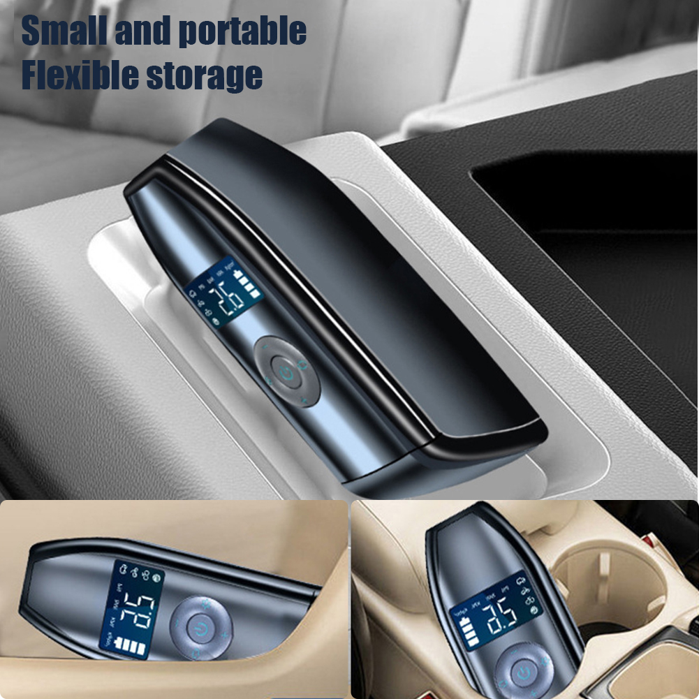 *1. COMPACT, PORTABLE & HANDHELD INFLATOR - Size: only 6.5x7.5x18cm, the mini tire inflator is designed for compact storage in the trunk, armrest storage box, and even the glove box, you can carry it with you in case of an emergency.