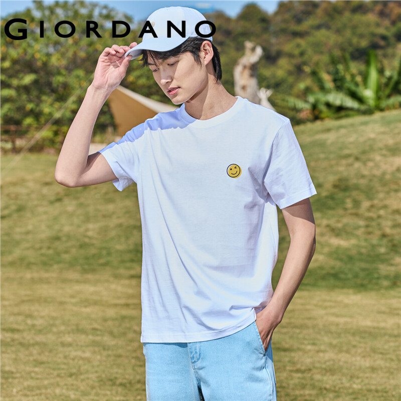 GIORDANO Men And Women Smile Series T-Shirts Short Sleeve Casual Summer T-Shirts Print Crewneck 100% Cotton T-Shirts 99392007