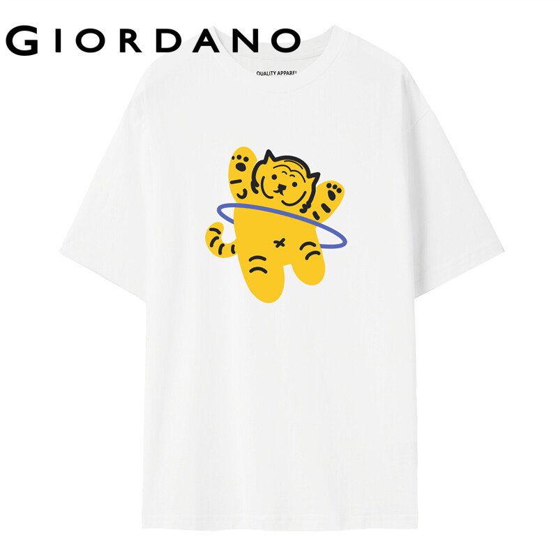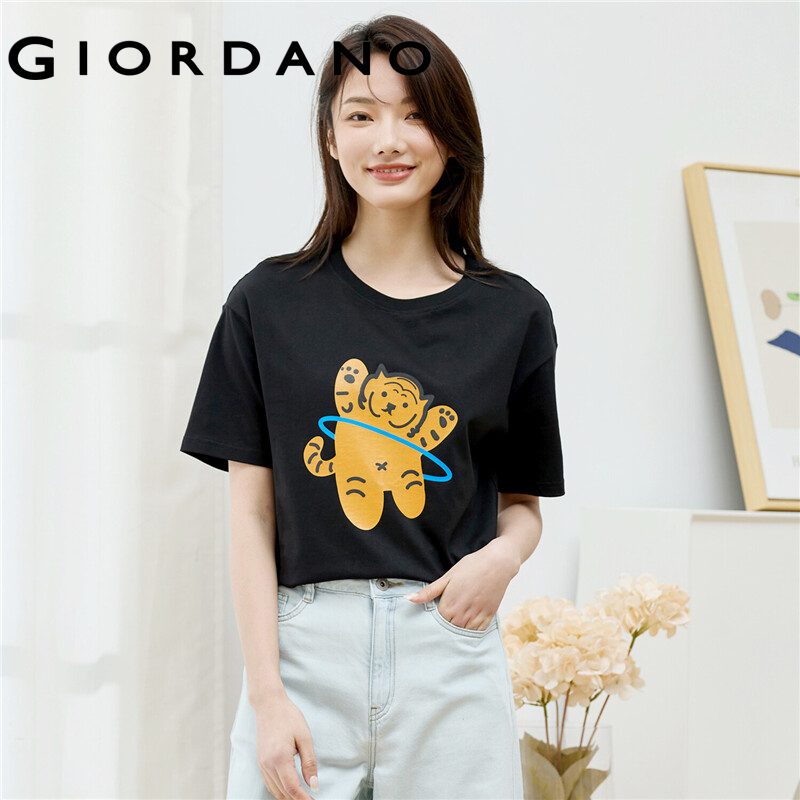 GIORDANO Women T-Shirts Print Graphic 100% Cotton Casual T-Shirts Simple Crewneck Short Sleeve Summer Basic T-Shirts 99392009