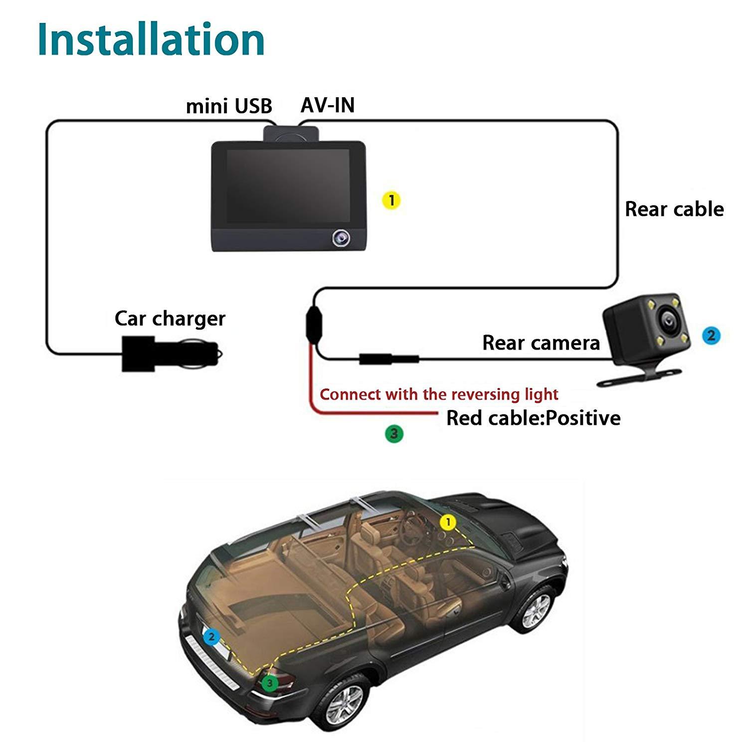 EKLEVA Car DVR 3 Cameras Lens 4.0 Inch HD Dash camera 3 way car Dual Lens With Rear View Camera Video Recorder Auto Dash Cam