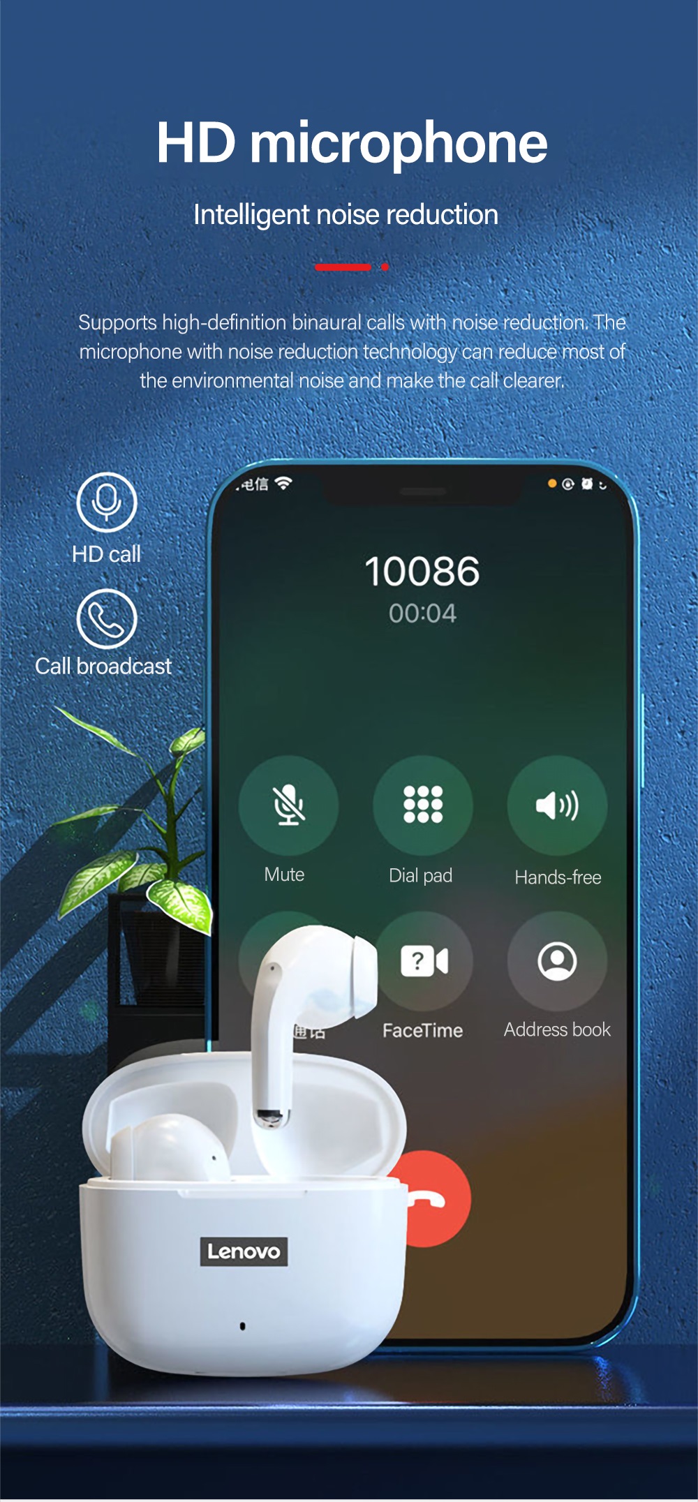 ??【???? ??????】LENOVO LP40 PRO Wireless Earbuds TWS HD Music With Microphone IPX5 Water Resistance