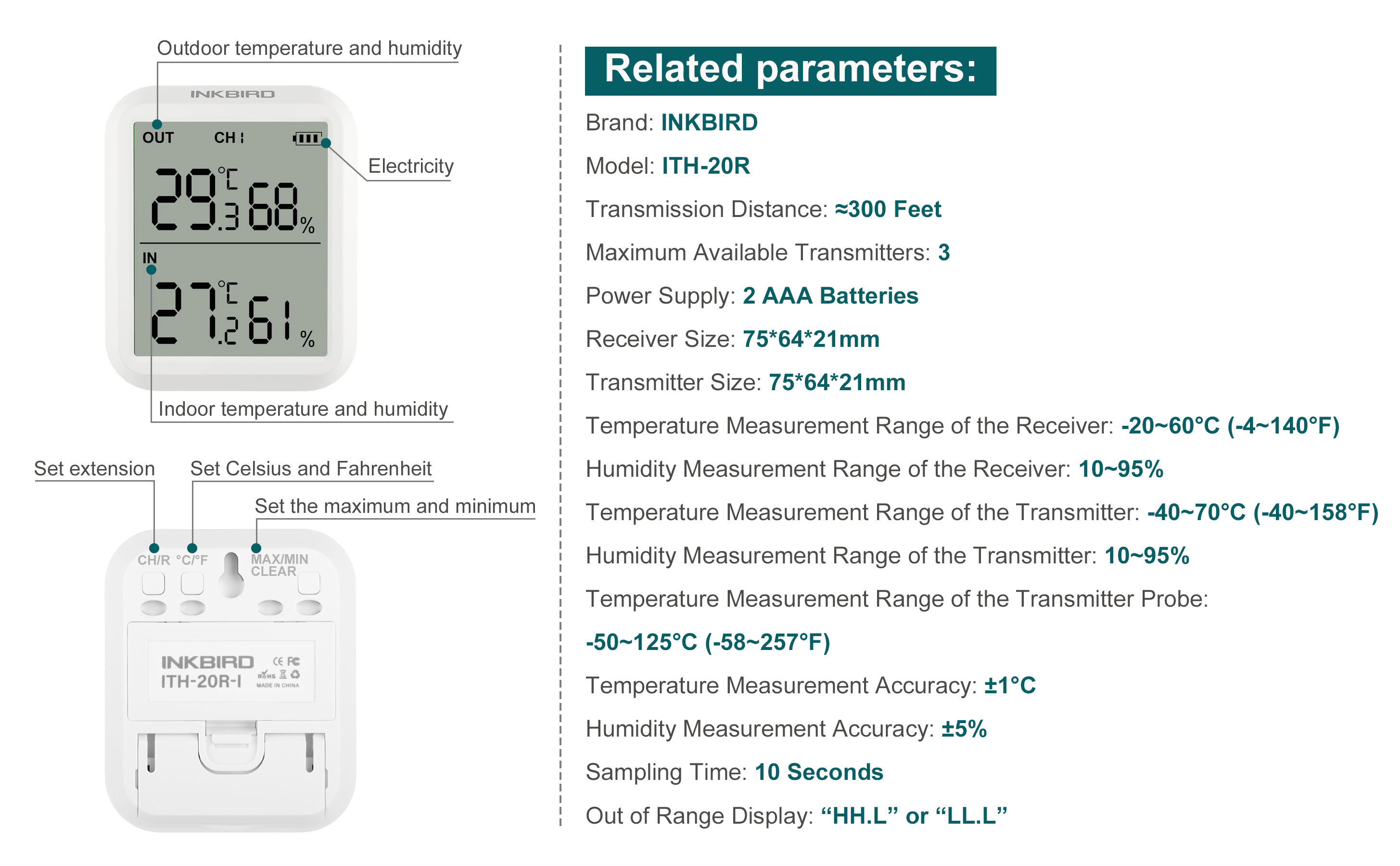 Temperature Measurement Range of the Receiver: -20~60℃ (-4~140°F)