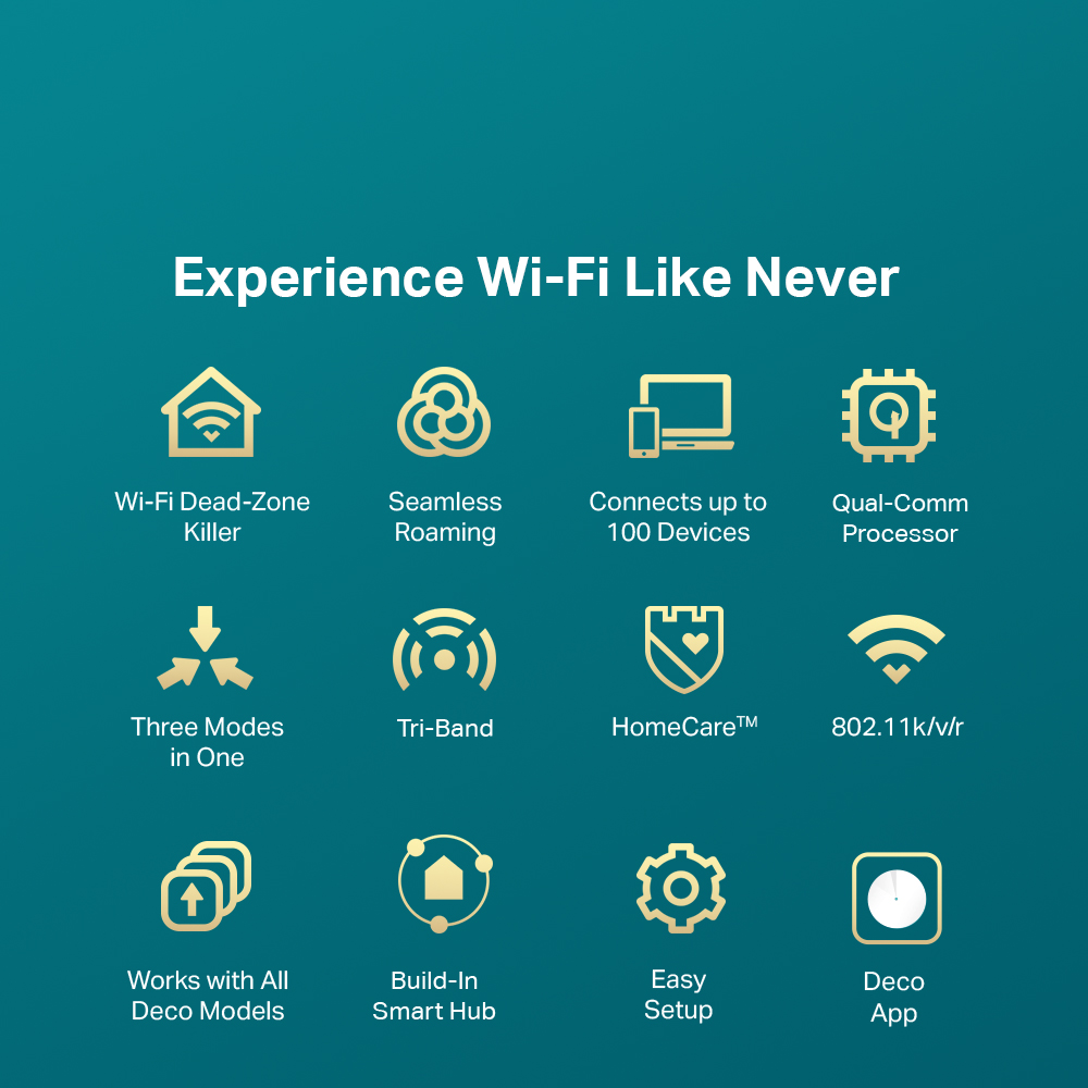 TP-LINK Deco M9 Plus(3-pack) AC2200 Tri Band Gigabit MU-MIMO WiFi Mesh Router (Whole Smart Home Mesh WiFi System) Works with all Telcos (Supports IPTV)