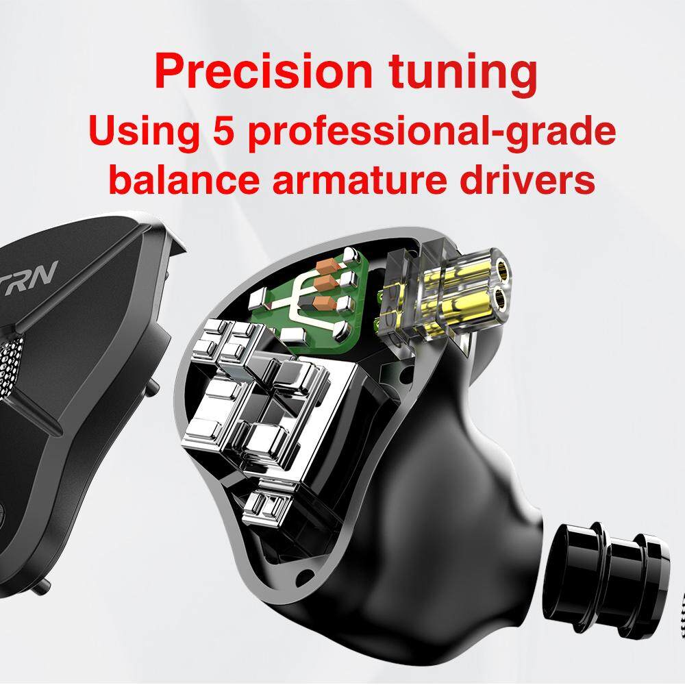 TRN BA5 5BA In Ear Earphone Metal IEM HIFI Monitor Running Sport Headset Stage Resolution Detachable 2Pin V90/ZSX/C12/AS10