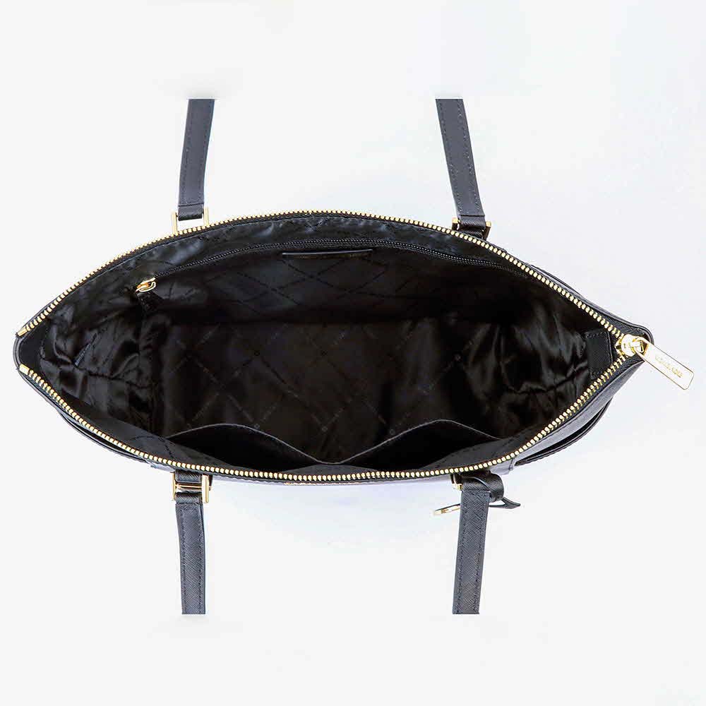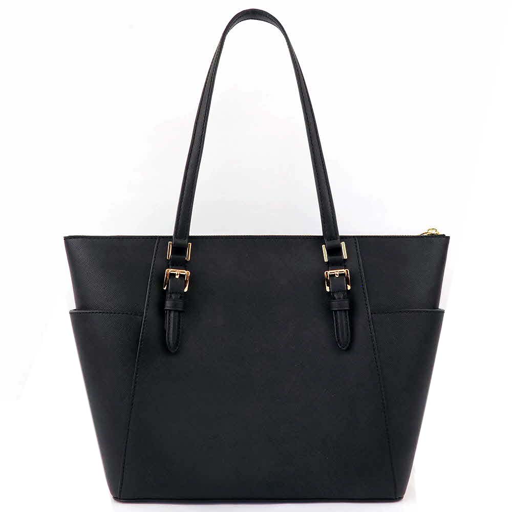 Michael Kors Handbag With Gift Paper Bag Tote Charlotte Leather Large Top Zip Tote Shoulder Bag Black # 35T0GCFT7L