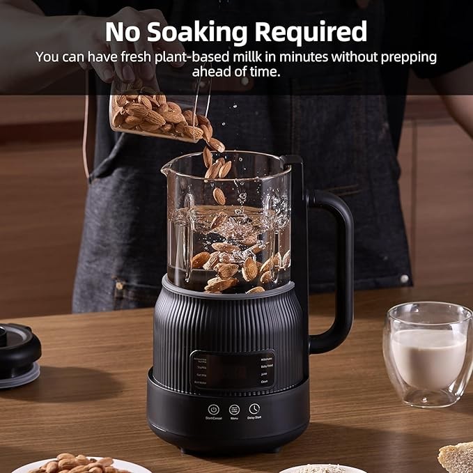 • 【8-in-1 Versatile Functionality】No soaking required—this all-in-one nut milk maker lets you easily prepare a wide range of plant-based drinks including nut milk, soy milk, oat milk, milkshakes, rice paste, tea, boiled water, and fresh juice. Plus, the self-cleaning function saves time and effort, making it your ultimate kitchen companion for healthy living.