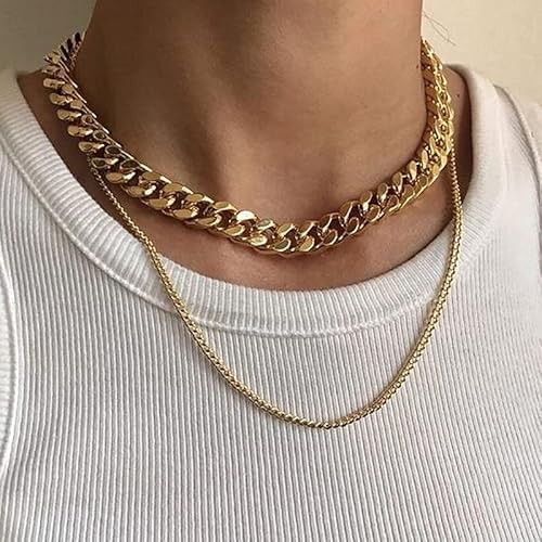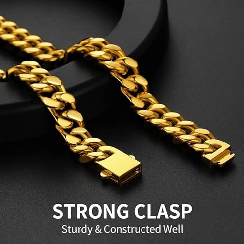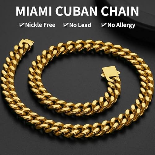 ChainsHouse Stainless Steel Men's Cuban Chain, Black/18K Gold Miami Cuban Chain Necklace, 5mm/7mm/9mm/12mm/14mm Width, Non-Discoloration Durable Hip Hop Men's Jewelry, 18" - 7" x 2.4", Sent in Gift Bo