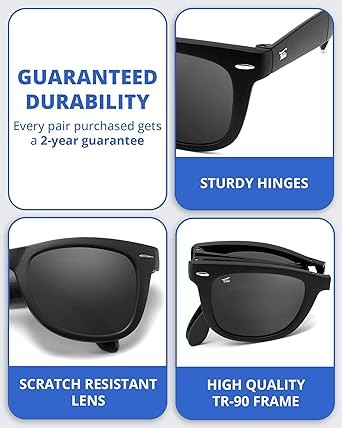• Polarized 7-layer HepTEK lenses for every occasion - Our foldable sunglasses feature polarized 7-layer HepTEK lenses that provide 100% full-spectrum UV protection, including UVA, UVB, and UV400. The lenses are also scratch-resistant, ensuring long-lasting clarity and durability.