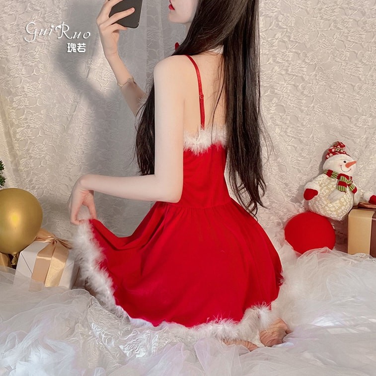Erotic lingerie rabbit girl Christmas outfit set one size burgundy (Christmas adult-only gift)