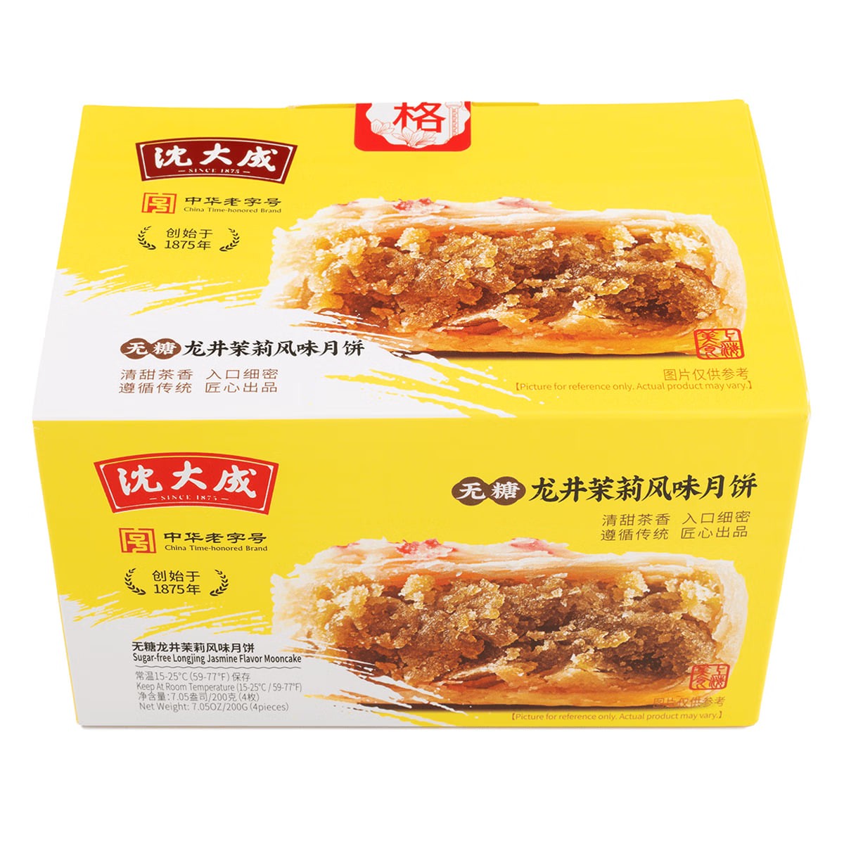 Shen Dacheng (Shanghai Time-Honored Brand) Su-Style Longjing Jasmine Flavored Mooncakes, Sugar-Free, Fine Sand Shortbread, a Mid-Autumn Festival Shanghai Specialty, 4 pieces, 200g. Suitable for those with diabetes.